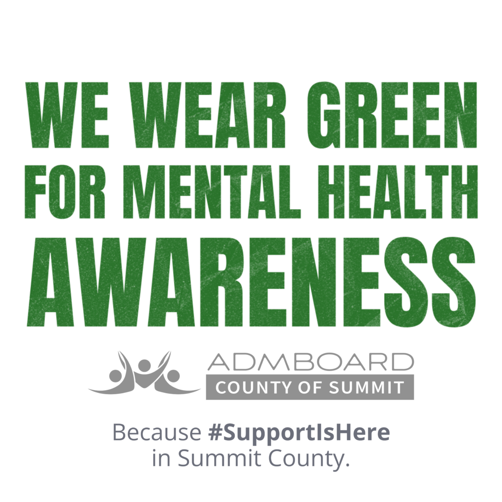 The ADM Board works year-round to connect individuals and families with behavioral health services and resources. Wear Green Day Summit County helps raise awareness of mental health resources and reminds our community that Support Is Here.
