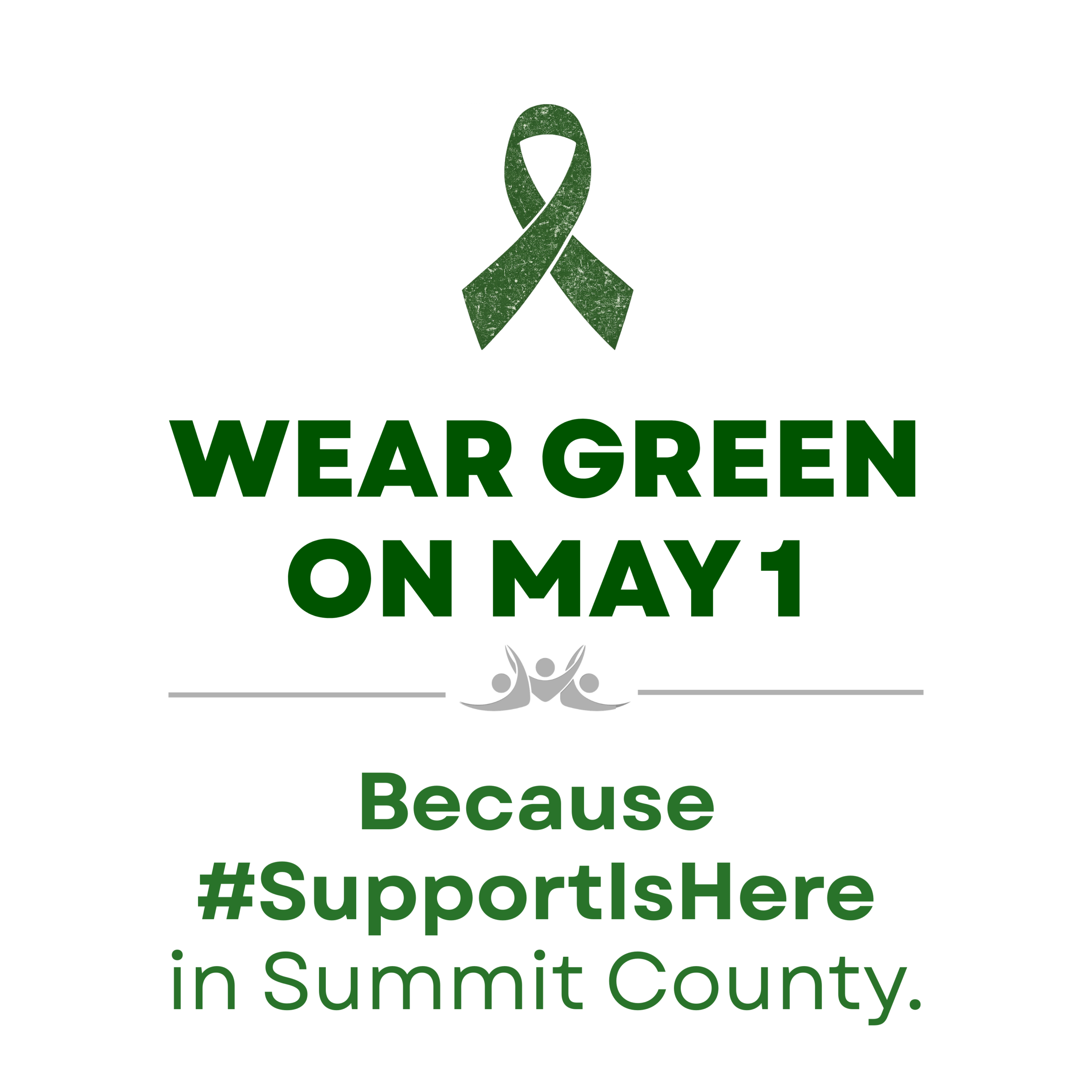 Wear Green Day Summit County is observed on the first Friday in May in recognition of Mental Health Awareness Month. The Summit County ADM Board invites residents, agencies, workplaces, schools, and community partners to wear green on May 1 as a visible sign of support for mental health. Wearing green helps reduce stigma, spark conversations, and remind our community that Support is Here in Summit County.